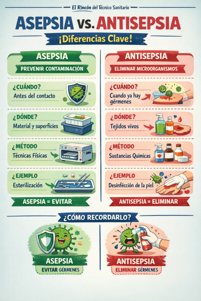 ASEPSIA vs ANTISEPSIA: DIFERENCIAS CLAVE QUE TODO TÉCNICO SANITARIO DEBE CONOCER